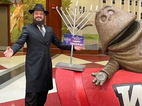 (Nov. 29, 2023) Rabbi Shlomo Litvin of Chabad of the Bluegrass in Lexington visited WKU on Wednesday to help promote the upcoming Hanukkah Before You Go celebration. He came with Hanukkah supplies for WKU's Jewish students and met with students at a meet-and-greet booth in the Downing Student Union.